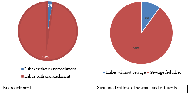 - About 79% of lakes monitored in Bangalore belongs to class E, 19% to class D and E and 2% belongs to class A.
