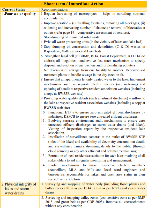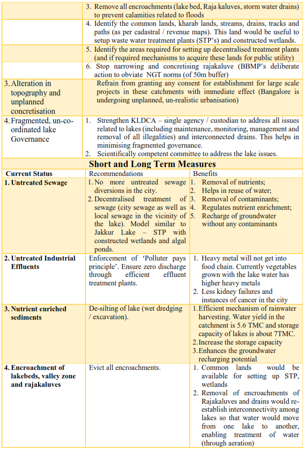 - Removal of encroachments from lakes, lake water beds and storm water drains, regular cleaning of lakes.