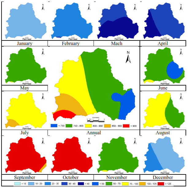Figure 5.8: Spatial Distribution of Rainfall (All units in mm)