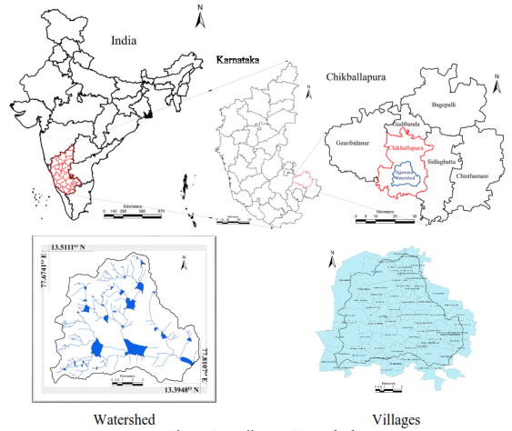 Ajjawara watershed is located in Chikballapur Taluk of Chikballapur District, Karnataka (Figure 5.1). Extending between 13.3948° to 13.5111°N and 77.6741 to 77.8107 °E, Ajjawara catchment has as area of 122.14 km2, covering about 71 villages (Figure 5.1).