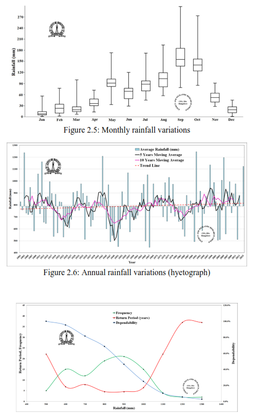 Annual rainfall pattern (Figure 2.6) indicates higher variability in rainfall with respect to mean. The trend line and the moving averages indicate increasing rainfall
