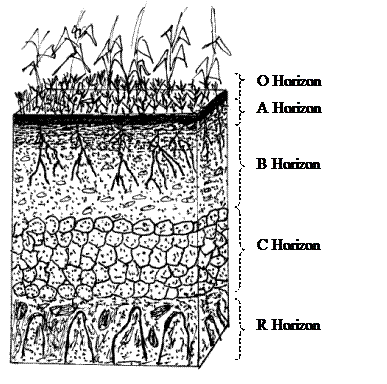 The uppermost horizon in a typical soil profile is called the O horizon. This horizon is composed mostly of mineral soils. This horizon contains more than 30% of organic matter present in the soil profile. Below the O horizon is the A horizon which is called the fertile top soil. Below the A horizon is the E horizon .The main feature of this horizon is the loss of clay, iron and the aluminum. Mineral horizon with evidence of pedogenesis or illuviation is called the B horizon. Below the B horizon is the un-weathered geologic material commonly called as C horizon. Below the C horizon is the hard bed rock commonly called R horizon (Miller & Donahue, 1990). The quality of the soil varies from horizon to horizon.