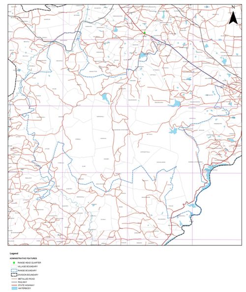 | West: From Ripponpet along eastern portion of Ripponpet-Tirthahalli road including Mugudthi state forest upto Konandur which runs north to South. |