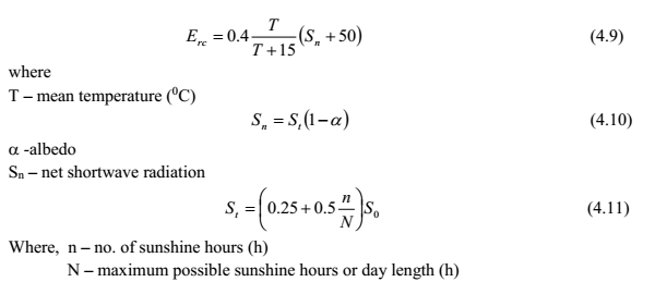 Pruitt, W.O. and Doorenbos, J., 1977. Empirical calibration, a requisite evapotranspiration formulae based on daily or longer mean climatic data? In: Proceedings of the International Round Table Conference on “Evapotranspiration”, International Commission on Irrigation and Drainage, Budapest, Hungary, 20 pp.