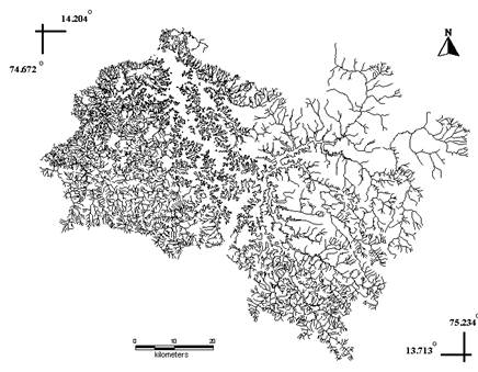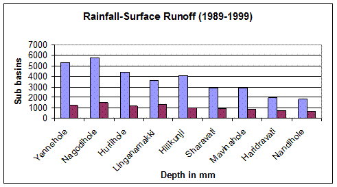 The most common drainage pattern found in upstream river basin is dendritic. However, the drainage density differs from west to east of the basin i.e. it decreases from west to east. Higher densities are found in sub basins such as Yenneholé, Hurliholé, Nagodiholé and Hilkunji. Lower drainage densities are found in Linganamakki, Sharavathi, Mavinaholé, Haridravathi and Nandiholé. High drainage densities usually reduce the discharge in any single stream, more evenly distributing runoff and speeding runoff into secondary and tertiary streams. Where drainage density is very low, intense rainfall events are more likely to result in high discharge to a few streams and therefore a greater likelihood of "flashy" discharge and flooding in humid areas and suggests resistant bedrock.