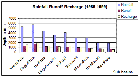 Table 5.17 clearly shows the increase in interception with vegetation and rainfall. High interception in western sub basins is due to good vegetation cover such as evergreen/semievergreen forest and moist deciduous forests whereas the vegetation cover such as natural forests is lesser in eastern sub basins. Plantations and agricultural activities are higher in the eastern and southern basins.
