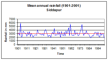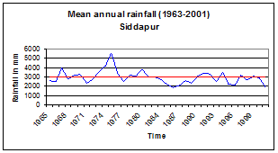 Figure 5.23: Mean annual rainfall Figure 5.24: Mean annual rainfall (1901-1963) (Siddapur) (1963-2001) (Siddapur)