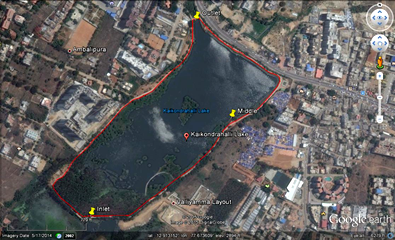 Figure 1: Google earth image of Kaikondrahalli Lake