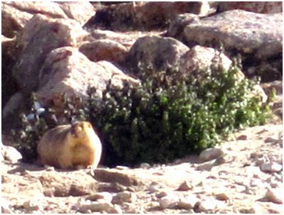 Apart from large herbivores, there are several small and less celebrated plant eating mammals. The most prominent among them is the marmot (Figure 58), of which there are two species in Ladakh: Himalayan marmot and long-tailed marmot. Two species of hare are Tibetan woolly hare (Figure 57) and Cape hare. Others include six species of pika and two species of vole (small burrowing mammals). Mammals with their IUCN Conservation status are listed in Table 6 given next.